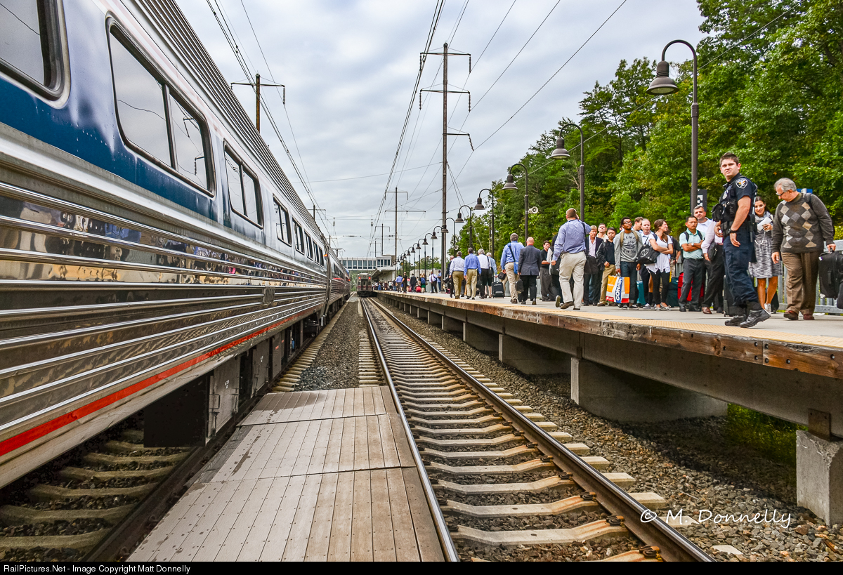 Amtrak is operating off the Track 2 (the middle track), which is a very rare occasion since this requires the low level platforms at the far end of the high level platforms to be used. This provided for a unique view.