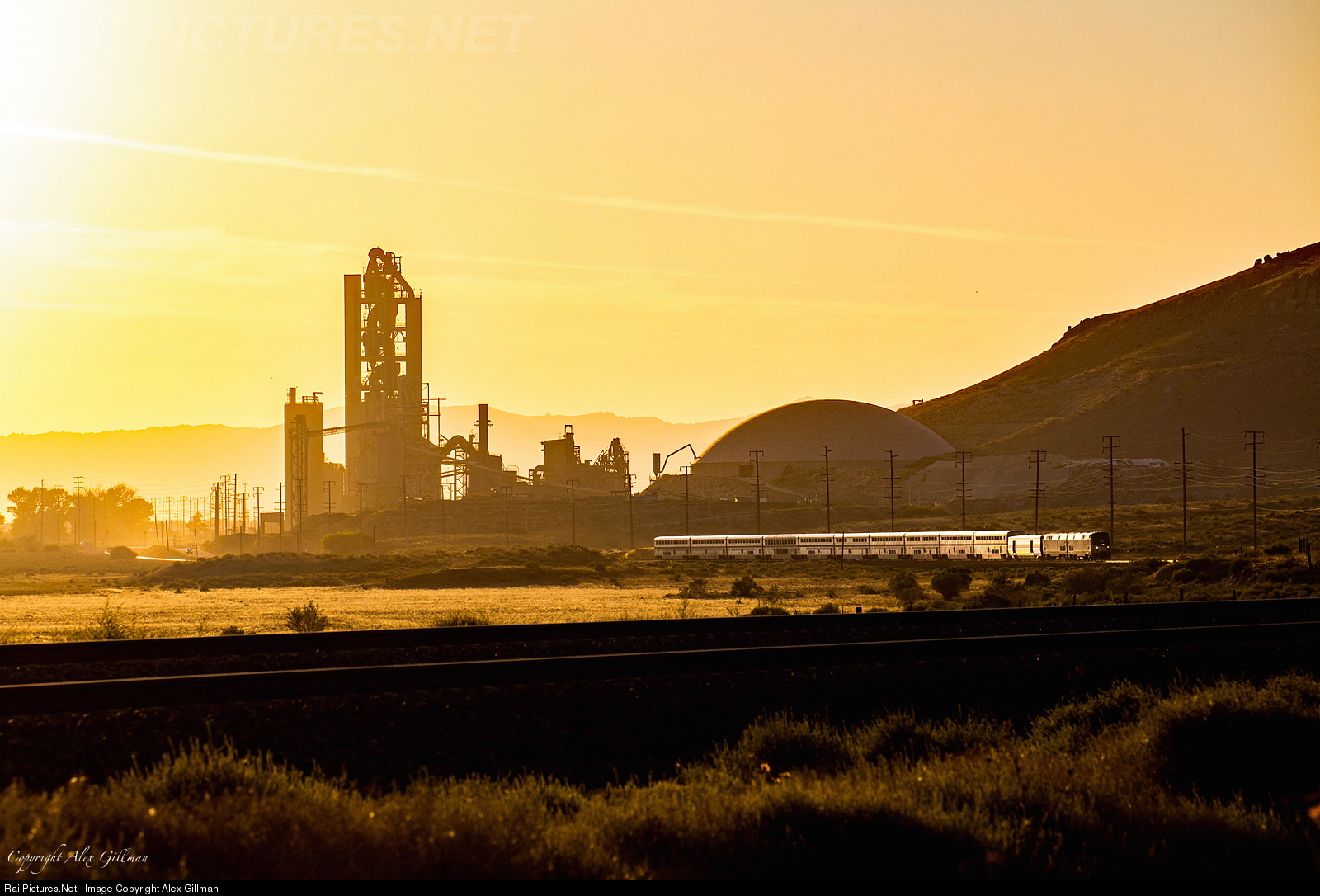 Stainless Steel At Monolith. Amtrak 11, the southbound Coast Starlight, catches the golden hour rays of sunlight as the popular passenger train detours over Tehachapi. Having just crested the summit of the pass only a mile or so back, No. 11 is quickly picking up speed as it drops downgrade toward Mojave.