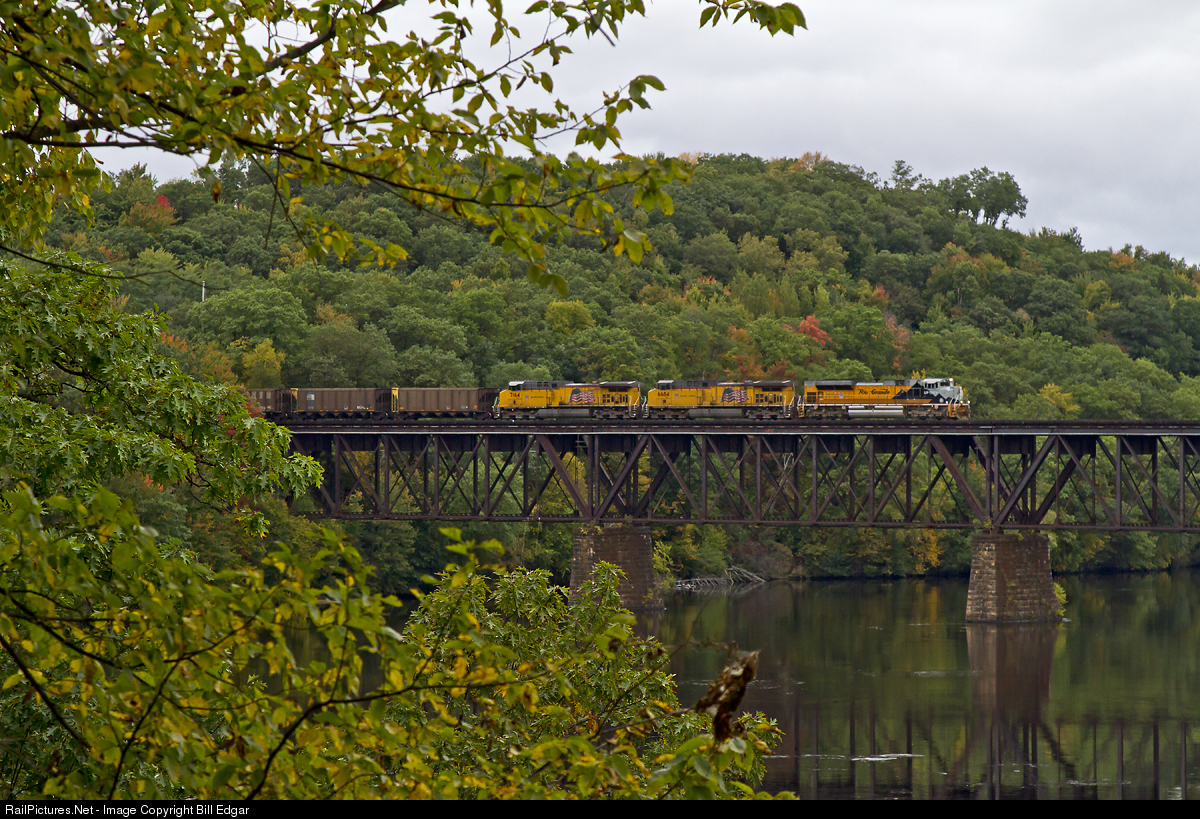 | UP 1989 crosses the Chippewa River in Eau Claire, WI with an eastbound coke train as it approaches the Altoona, WI crew change. |