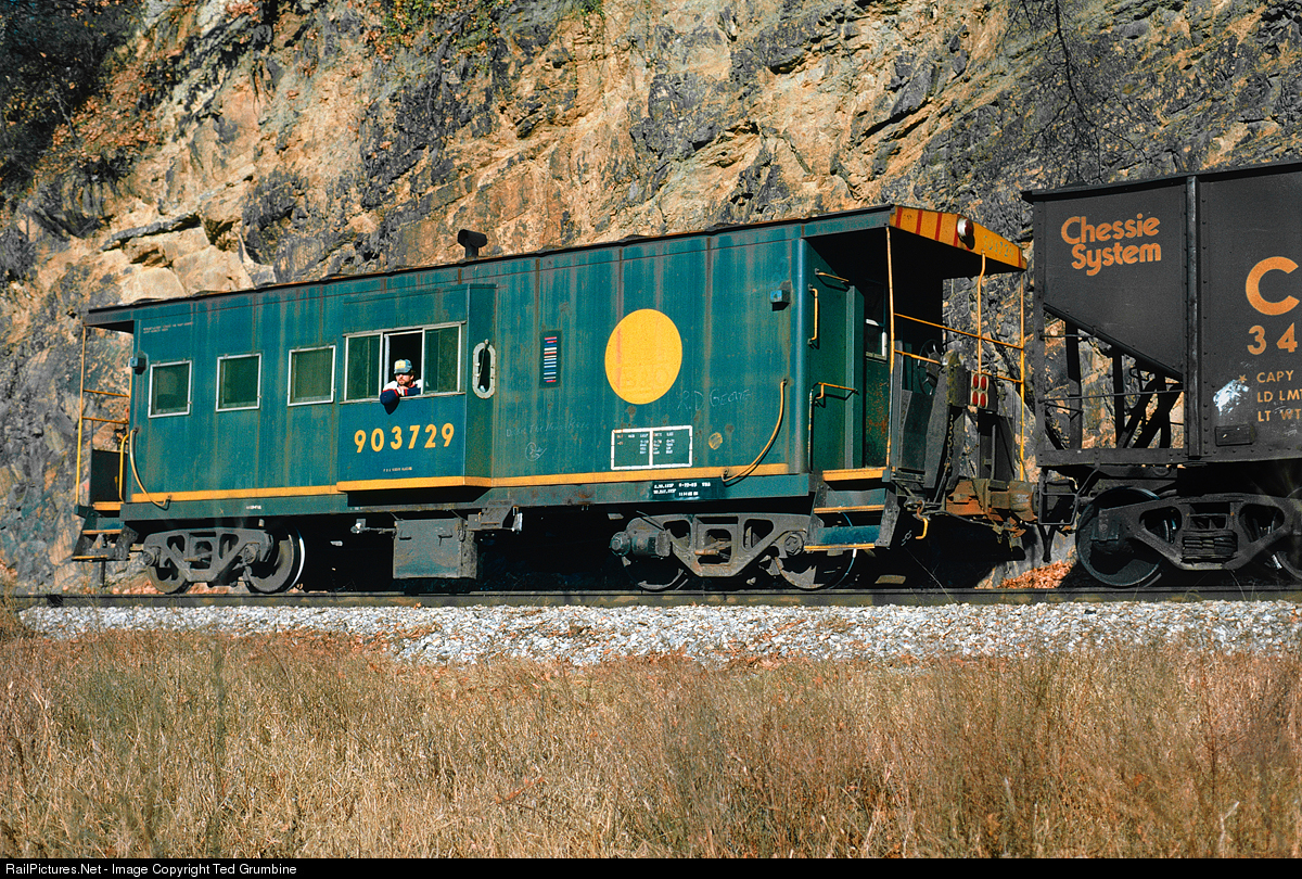 “Sans Dome” Skirting past the rock face at Relay is B&O bay window caboose 903729, bringing up the rear of an Old Main Line coal drag destined for the Curtis Bay piers. Still in (now faded) Enchantment Blue, the former B&O C3729 was built in 04/1971 by International Car, and is C&O/B&O unified class C-26. There’s some very faint lines in that yellow circle, but I sure can’t fathom a Capitol Dome out of them. On the bright side, at least it didn’t have a kitten on it yet (and probably never did, since it was retired in 02/1986, less than 3 months after the photograph).