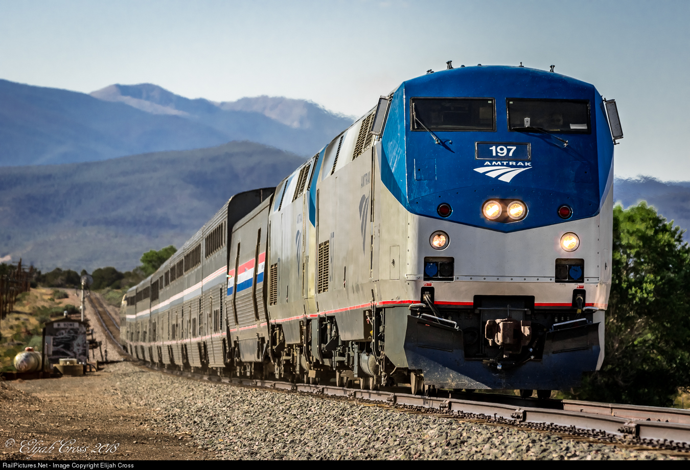 | Amtrak's Chicago bound Southwest Chief makes its daily appearance in the picturesque community of Rowe, NM on a stunningly hot summer afternoon. |