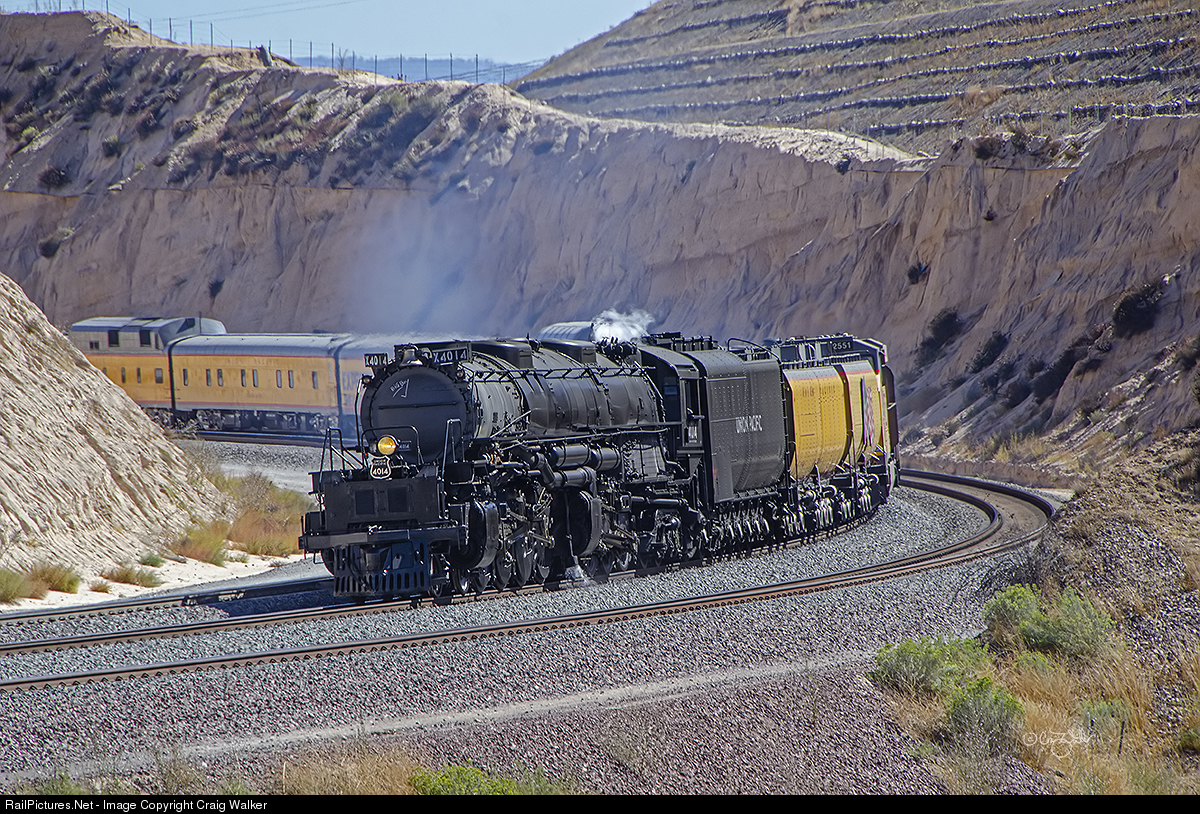 October 9, 2019, was an historic day as Union Pacific 4-8-8-4 4014 became the first “Big Boy” steam locomotive to operative under steam over southern California’s Cajon Pass! The big engine (recently restored to operating condition, and the largest steam locomotive in the world) is seen rounding the curve at Cajon Pass’ Summit as it makes its way west to the UP’s West Colton Yard in Bloomington, California. In a few days this engine will haul passengers over Cajon on a pair of fan trips from West Colton to Barstow and return (the next day). The massive machines were built by Alco in the early 1940s to carry heavy trains over the Wasatch Mountains between Utah and Wyoming.