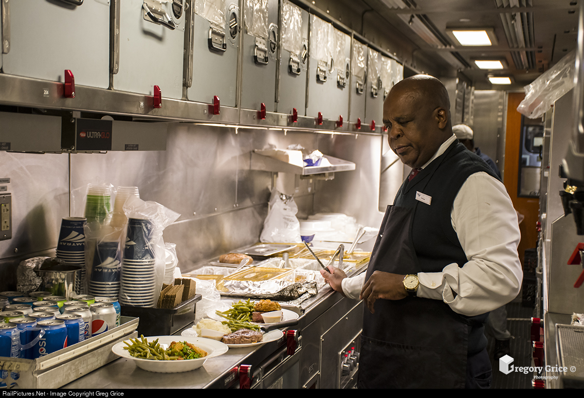 One of the LSAs aboard Amtrak's Silver Meteor towards Miami makes last checks of each plate before bringing them out to hungry patrons in the dining car.