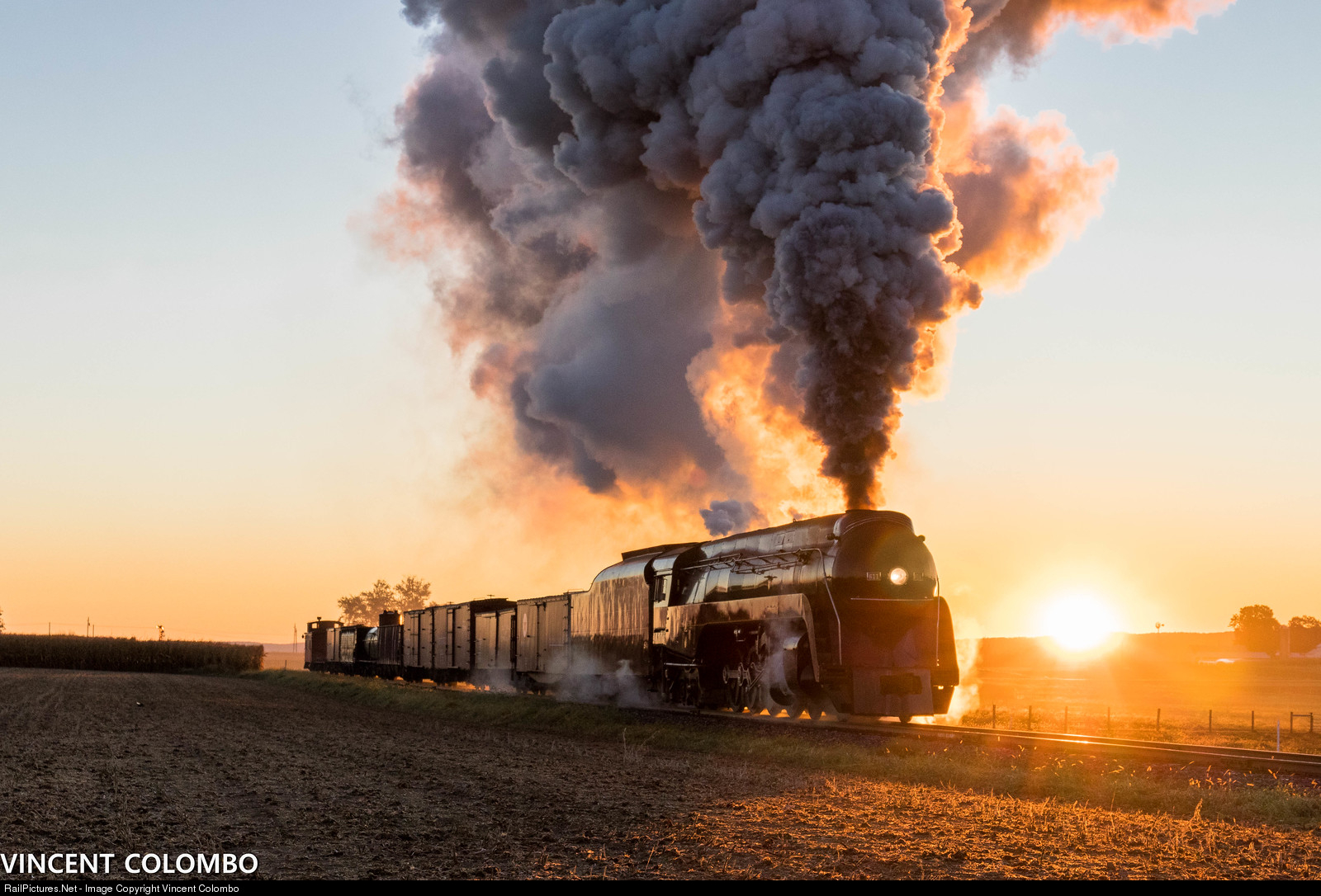 | NW 611 (4-8-4) at Verdant View Farm in Paradise, PA at sunrise. Taken during a photo charter with Lerro Productions and the Strasburg Railroad. |