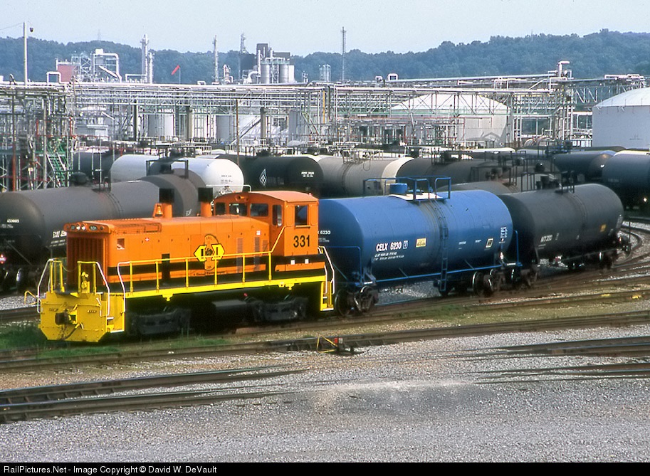 | Rail Link 331 switching the tank car yard at Eastman in Kingsport...ex-CR 9517, nee-PC 9517 |