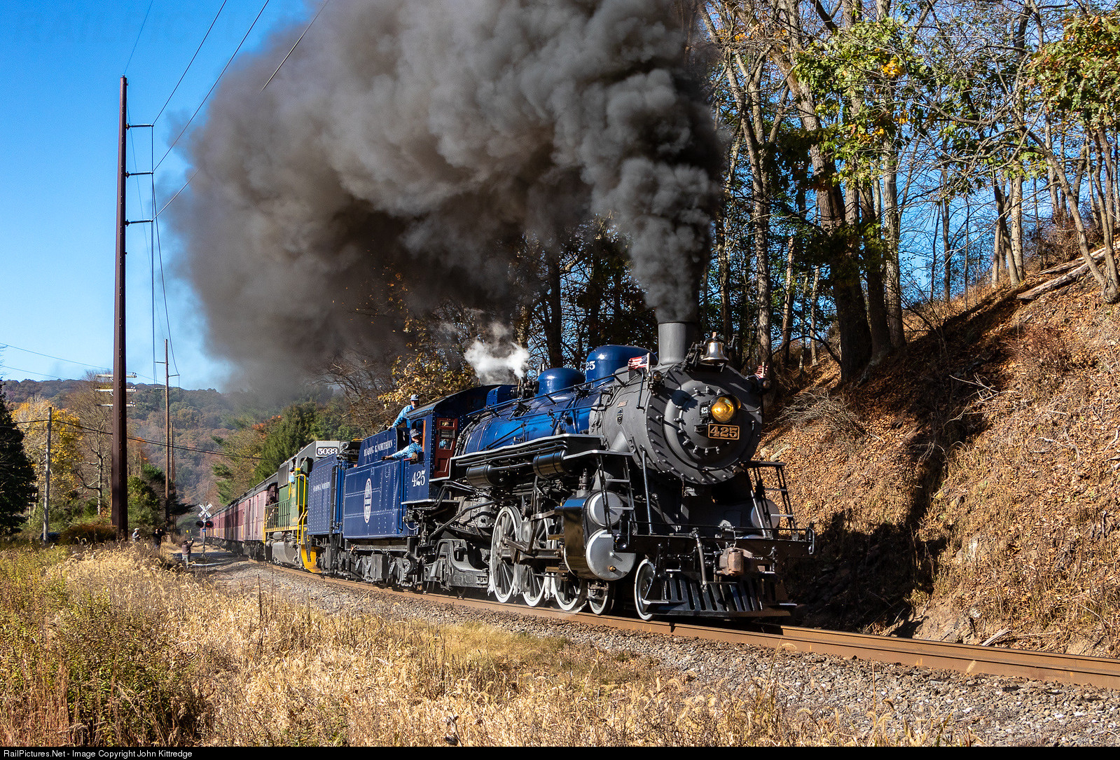 Reading and Northern 425 romps upgrade through Atlas Road on a gorgeous fall morning