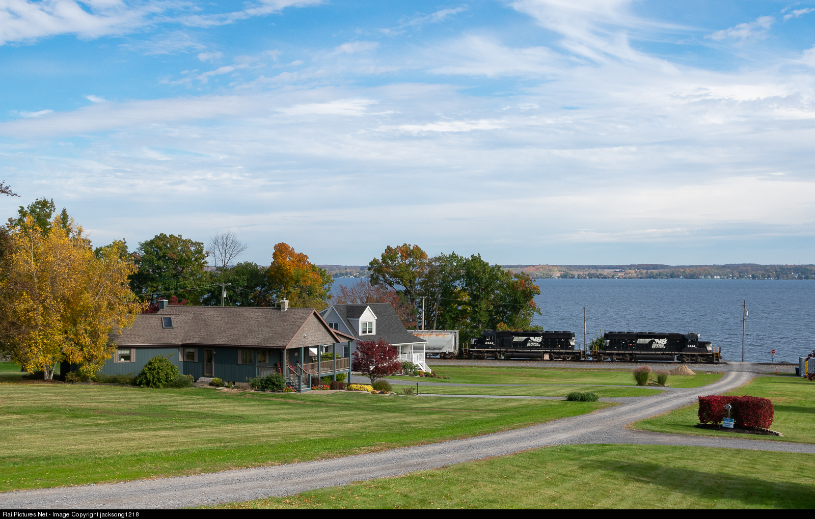 Norfolk Southern Corning - Geneva interchange train H06 is headed Southbound back to Corning, and is seen here through Angus NY, on the shores of Seneca Lake.