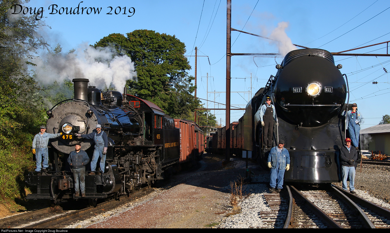 | As part of the "Norfolk & Western Reunion of Steam" event, a photo charter was planned using Strasburg Rail Road owned Norfolk & Western 475 and visiting locomotive Norfolk & Western 611. The 611 was pulling a freight train as it did in its final days of service. The crew seemed to enjoy the event as much as the spectators did.