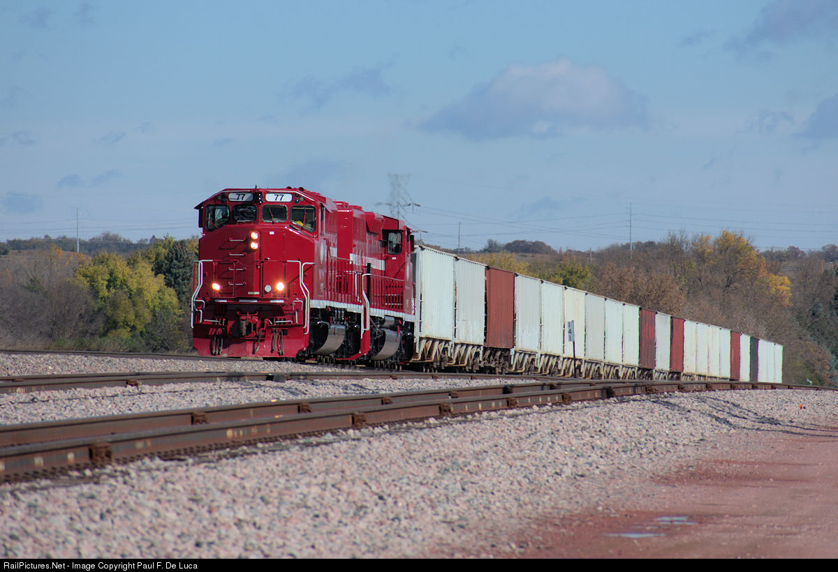 Ellis and Eastern RR 77 and 87 are on BNSF rails enroute from the quarry in Corson to Sioux Falls. Both units were recently painted after being acquired when EE purchased the Minnesota Southern Railway in 2017.
