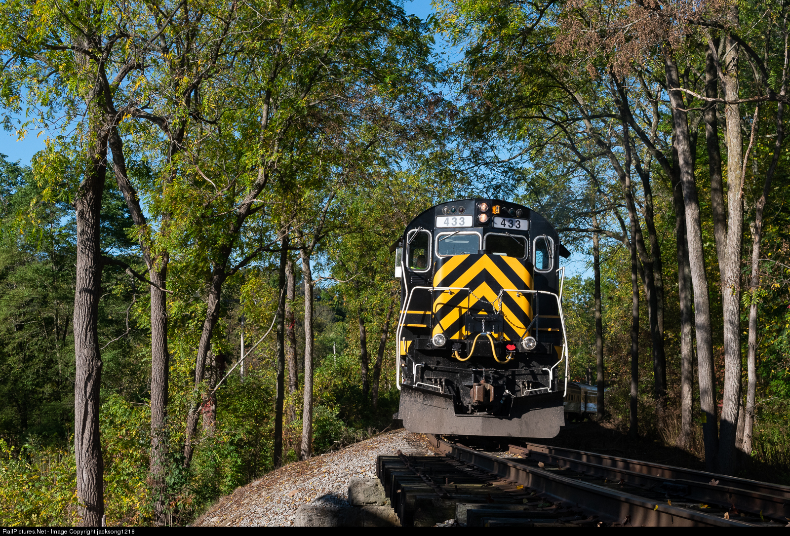 On October 5th, 2019, the Rochester and Genesee Valley Railroad Museum, with cooperation from the Livonia Avon and Lakeville railroad, ran excursion trains from Lakeville to Industry using the museum's classic NYC coaches. The train is seen here passing over Pole Bridge road, just south of Avon NY.