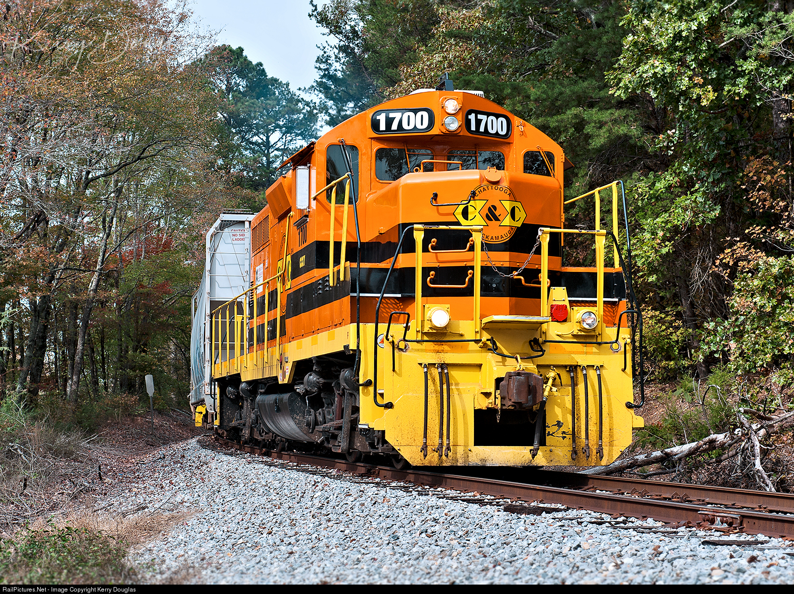 CCKY 1700 sporting the Genesee & Wyoming Corporate look is leading a very short 702 south on the outskirts of Rock Spring, GA. CCKY 1700 is not running solo today, as CCKY 1804 is on the other end of the train, doing a 1x1 practice, that is rarely seen on this railroad. the 1x1 practice came ahead as the local job was running north to Chickamuaga, GA to work the trans-flow facility. With no run around siding available on what was a lengthy train, it was easy to do the 1x1 concept for switching. CCKY 702 will run south to the storage siding where 1804 will take the single car and swap it out before ending the day at Thacker Dr. work south for the 702 will continue in the morning.