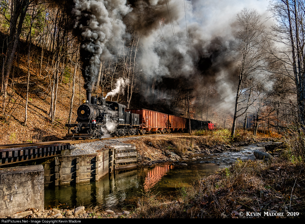Of the three major types of geared logging locomotives, the Climax is the rarest. There are just three of these beasts in active service as I write this. One in New Hampshire, one in Australia, and the one seen in this image, freshly restored to operation after nearly a decade's worth of effort. Built originally for the Moore-Keppel & Company in 1919, this 70-ton, 3-Truck, Class B Climax served the lumbering operation as their #6 for about 20 years, before the owners closed up shop. She was then sold to the Middlefork Railroad in Ellamore, WV, where she hauled coal for another 20 years, also as #6, finally retiring in 1960. She was sold to the State of West Virginia in 1970 for use at the Cass Scenic Railroad State Park, but alas, she was severely damaged in an engine shop fire before she could be restored, and she then spent several decades as a basket case. In the early 2000s, the Mountain State Railroad & Logging Historical Society began a serious restoration effort with volunteer labor. The process proceeded slowly but steadily over the next decade, and was ultimately taken over by the Durbin & Greenbrier Valley Railroad, which is the current operator of the Cass Scenic Railroad State Park. The restoration was finally completed in the late summer of 2019....well sort of. She's currently borrowing the turret from M&K Climax #3, so her boiler pressure will be limited to 150 lbs, until new parts can be made. She's also lettered for Moore-Keppel, but instead of her original #6, she carries her Cass Scenic Railroad number, which is #9. It is expected that this engine will be used primarily for special events, as she is a bit too light for the regular tourist trains at Cass.