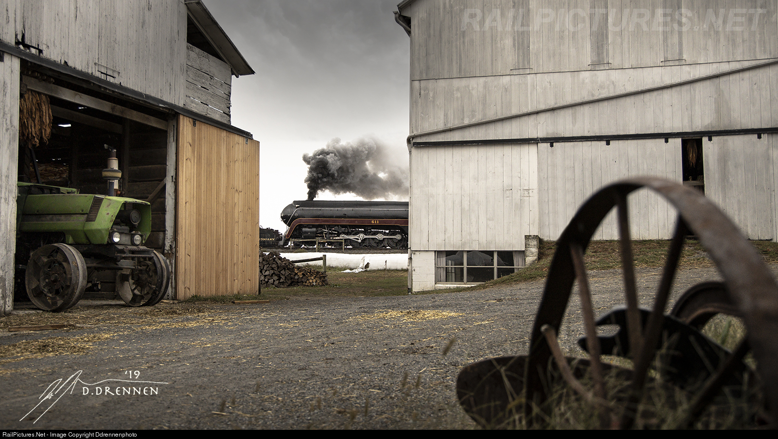 The shot I never saw coming, has found its way to the top of my personal favorites. Wandering between photo scenes, I joined a small group of other photographers whom were waiting for 611 to split the barns just outside of Strasburg Railroads Yard. Most went high, I decided to go low, from the view of some antiquated farming equipment.