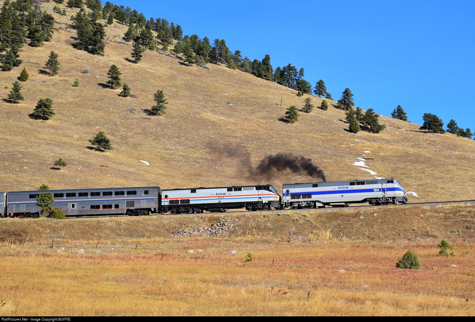 RailPictures.Net Photo: AMTK 184 Amtrak GE P42DC at Coal Creek Canyon, Colorado by BUFFIE