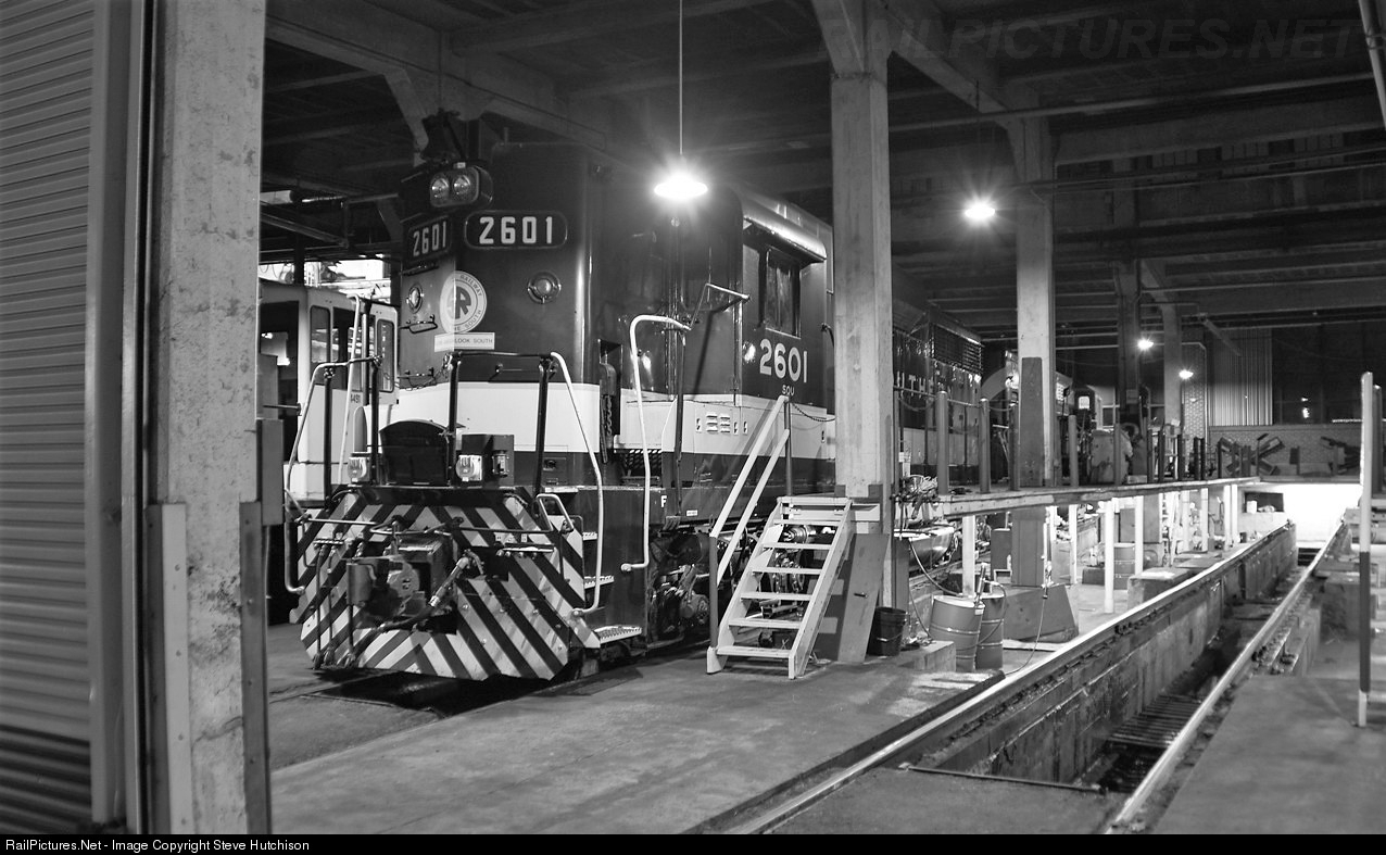 Former Southern Railway GP30, 2601, spends a peaceful night in the Spencer roundhouse.