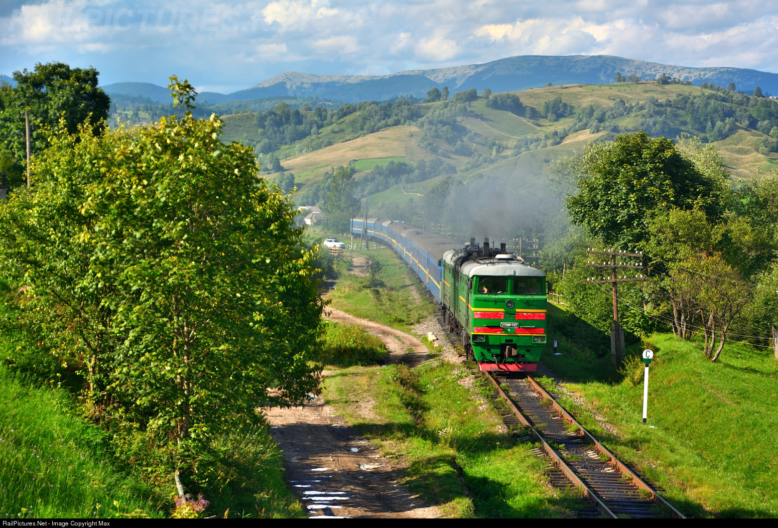 2TE10M-2421 with fast passenger train number 016ЛШ from Rakhiv to Kharkiv-Pasazhirskyi caught between Yasinya and Voronienko.