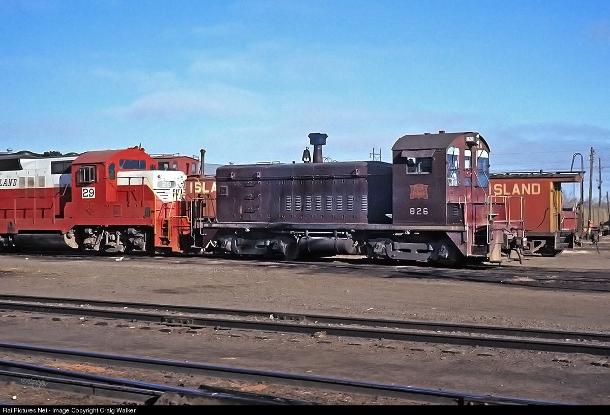 Switching the Rock Island yard in Amarillo, Texas, is RI SW8 826. The end-cab switcher was built for the railroad by General Motors Electro-Motive Division in November 1952, 20 years and 4 months before it was photographed on March 4, 1973. (Western Maryland GP9 29 was, at this time, on lease to the Rock Island.)
