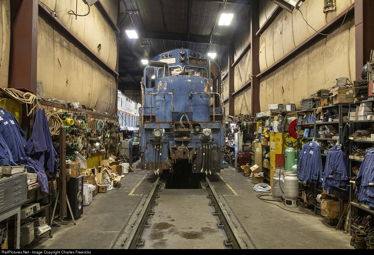 A former Wabash C424 is in the shops on her way to becoming Delaware Lackawanna 2409. (Taken with permission.)
