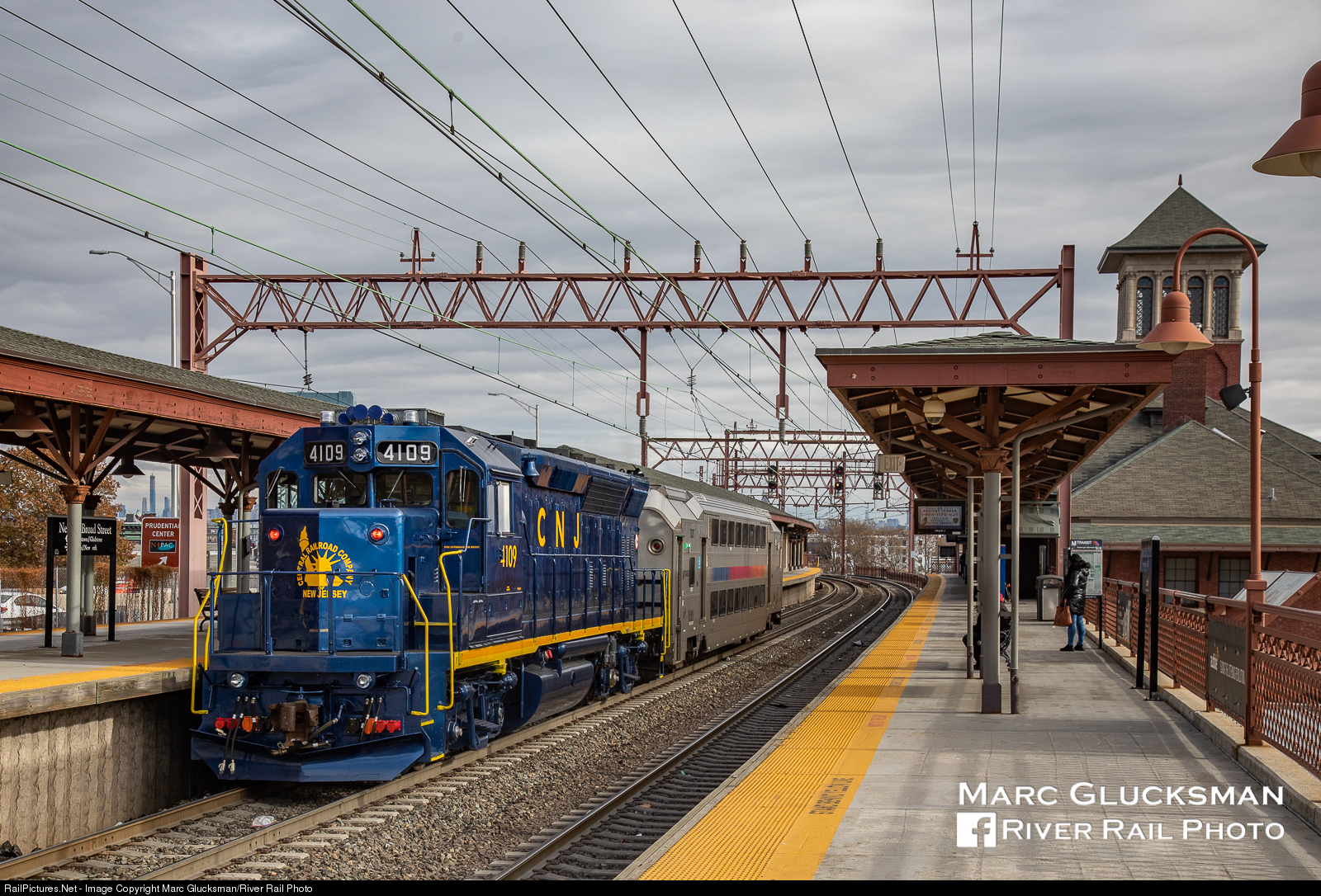 Testing on the main. NJ TRANSIT 4109 (GP40PH-2, neé CNJ 3677 GP40P) emerged from NJT’s Meadowlands Maintenance Complex for a short run to Newark Broad Street on the afternoon on Wednesday, November 20, 2019, marking its first appearance out on the high iron since undergoing maintenance related work and PTC installation at the MMC. This engine was recently repainted to a similar version of its original scheme, including NJDOT logo, as it was paid for by the State of New Jersey and operated by Central Railroad of New Jersey (CNJ).