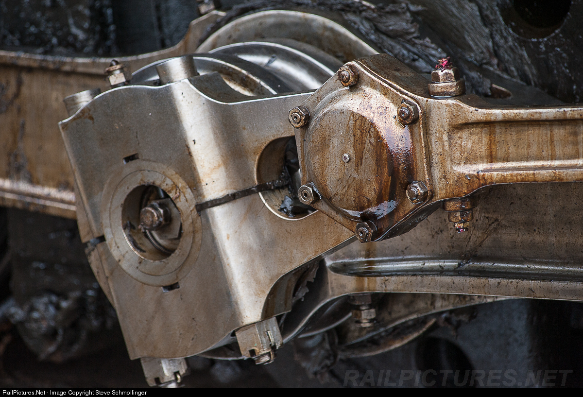 | This close-up shows where the 4014's eccentric rod connects to the eccentric crank. Such terms all but disappeared from American's engineering vocabulary when diesels knocked steam off the rails. |