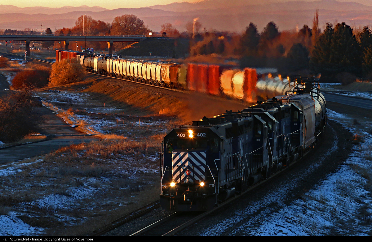 As sunset makes its arrival, a quad set of consecutively numbered GP35's thunder into Bozeman in the company notch with plenty of tonnage from Logan. A pair of SD45's will arrive under darkness and take the cars back to Laurel.