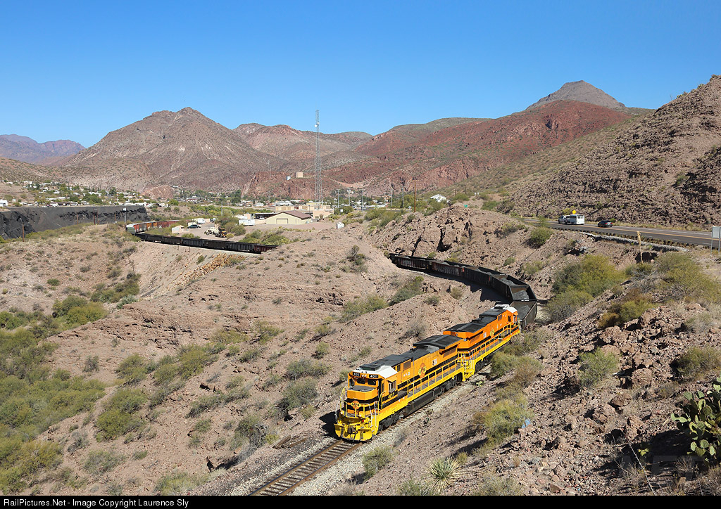 After interchanging with Freeport McMoRan, AZERs' 4011 & 4002 depart Clifton for South Siding, 4 Nov 2019