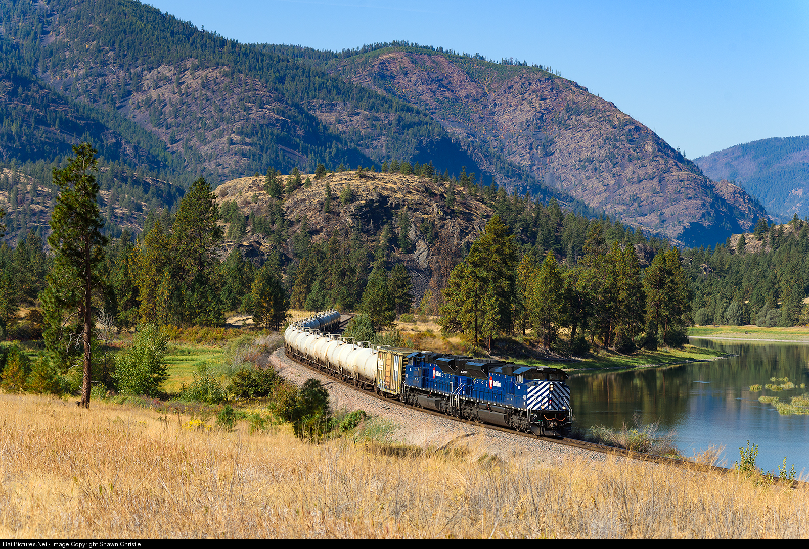 A pair of blue ACe's lead the daily "Day Gas" train on the Flathead river along MRL's 10th Subdivision.
