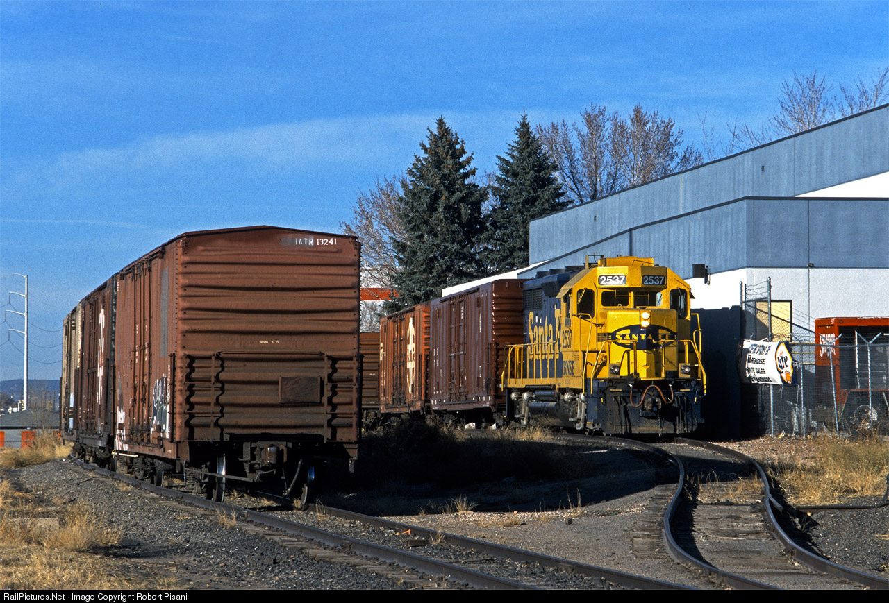BNSF's Colorado Springs-based local works the beer distributor at the extreme north end of the Roswell Spur. This trackage was once part of the original Santa Fe right of way through Colorado Springs, running parallel to the Rio Grande main north to Denver and operated together as the Joint Line. Aside from this spur, the remainder of the Santa Fe main between Colorado Springs and Palmer Lake was removed in the early 1970s in favor of single-track CTC operation on the D&RGW. This customer, located along N Nevada Ave at Mountview Lane, is no longer rail-served. As of 2019 (20 years since the date of this photo) this portion of the spur has been removed. It now terminates about one mile to the south at a lumber distributor.