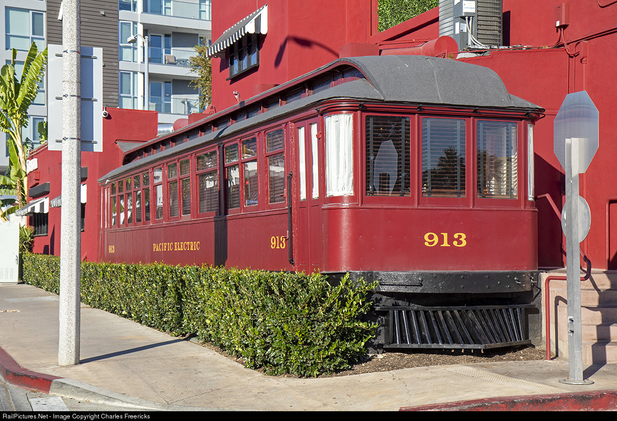 The Formosa Cafe in West Hollywood reopened recently and as part of the restoration they did a beautiful resetoration on the PE 800 car that is their bar. My first encounter with PE 913 was a sumer night in 1989, before I began dating my wife, and I had a date with a girl who I had been seeing a bit. She suggested Formosa Cafe and we met there for dinner. After we ate, she left for her home and I stayed and decided I would have a drink or two, having no idea that the bar was a Pacific Electric car. I sat on the barstool next to a young man who was rather blitzed already and the two of us drank together and laughed at our lives, as I also realized he was Christian Slater who was the co-star of the movie HEATHERS, which was a big hit at the time. Christian was not yet of legal drinking age, and I was barely so. We bought each other drinks and drank and drank until I looked around and mentioned to him that the bar felt to me like a railroad car. He looked around and shrugged.