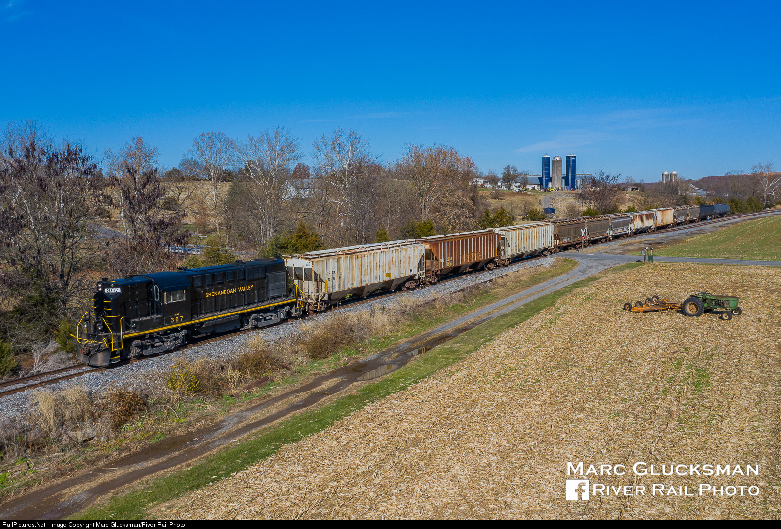 Having tied on to the cars at the interchange, Shenandoah Valley Railroad RS-11 367 sits at Scholars Road Mount Crawford, VA on Monday, November 25, 2019.