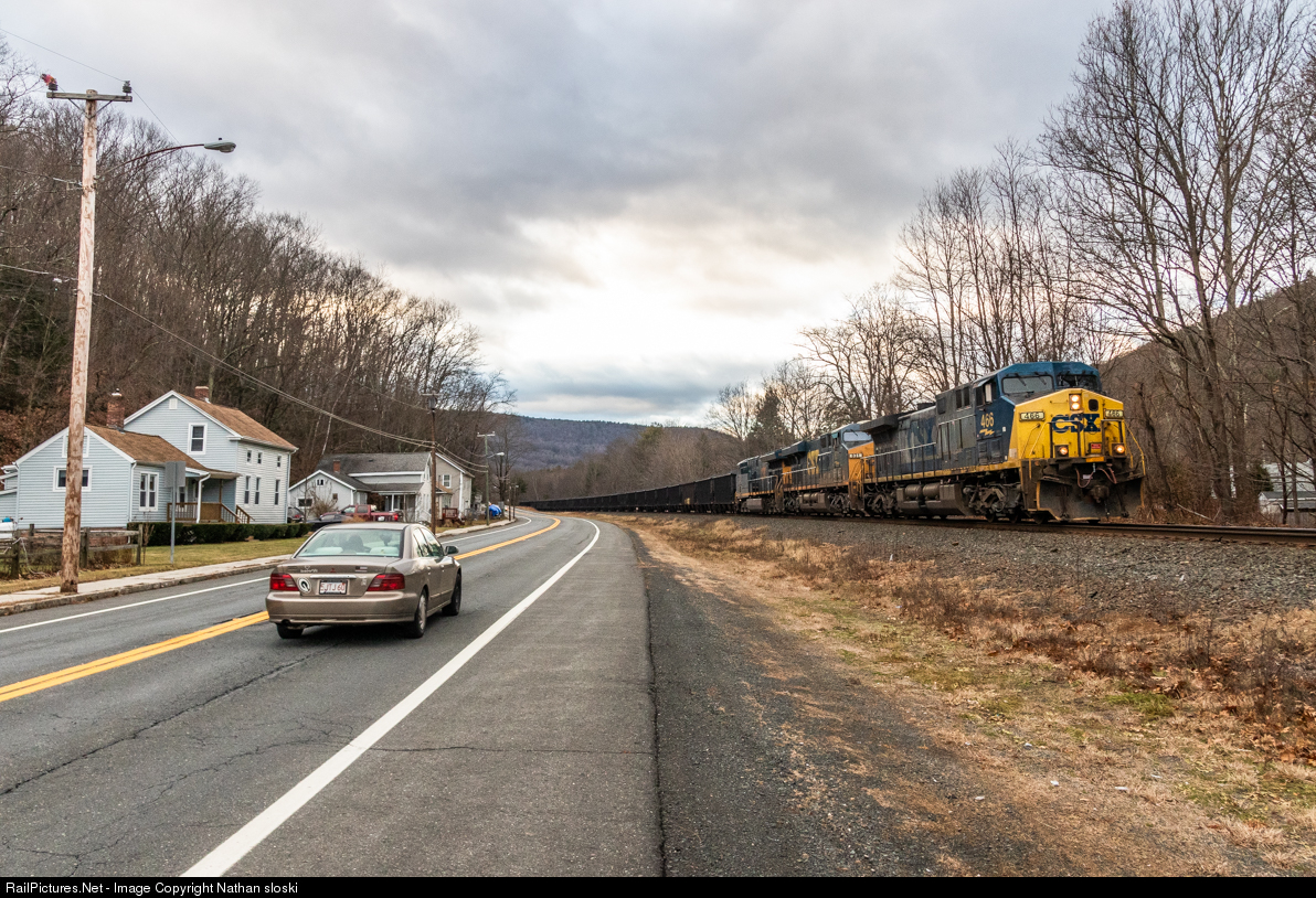 Black Diamonds in The Berkshires: Bow, NH bound CSX N618 rounds the curve in Huntington, MA at track speed. This is the first time since the late 1990s that a dedicated coal train has run over the Berkshire Sub. As an extra bonus, the add on unit they received in Selkirk happened to a YN2 AC44CW, making for a really nice consist.