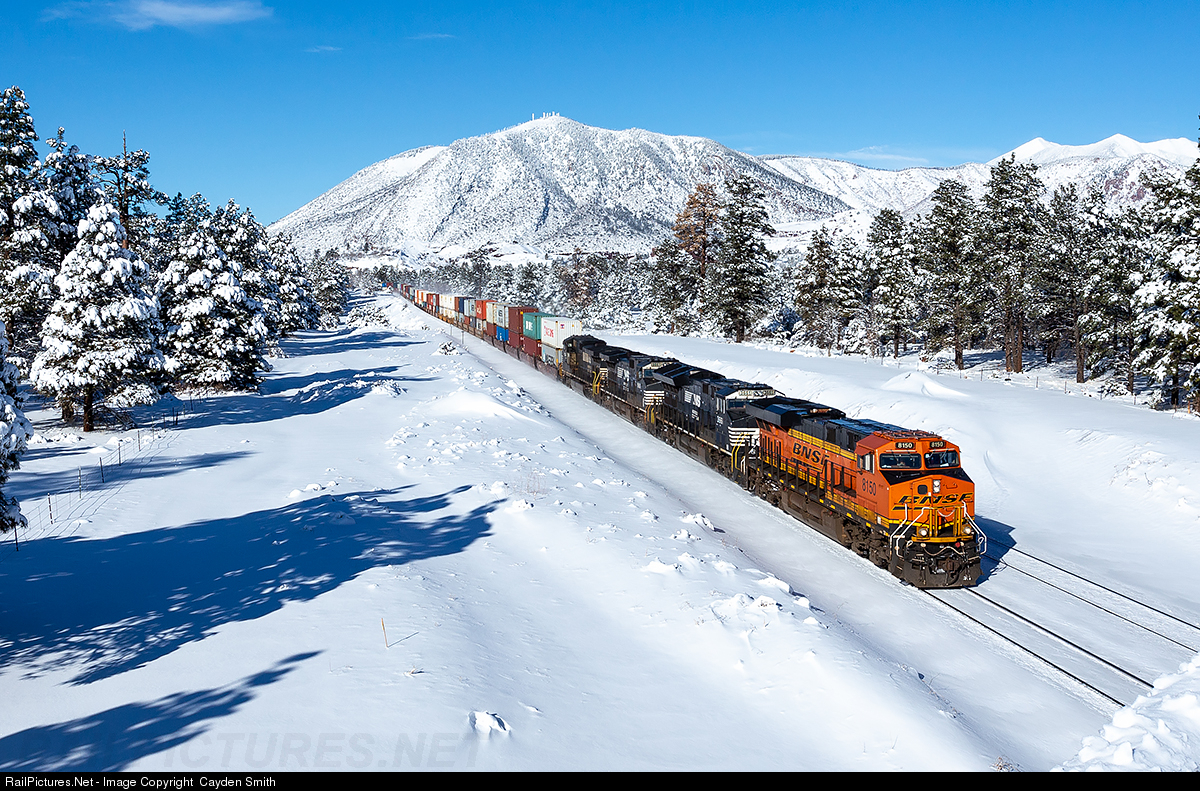BNSF 8150 leads a EB intermodal train through Flagstaff AZ after a huge winter storm