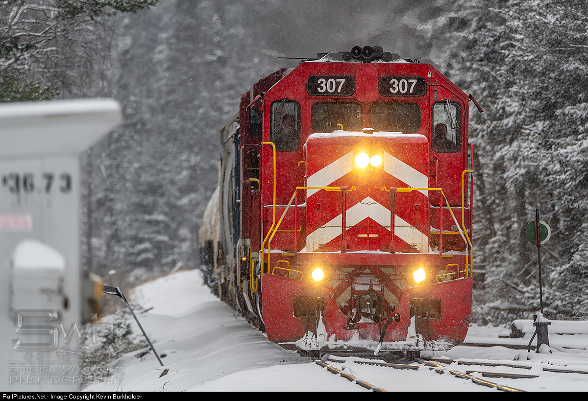 Vermont Rail System may be looking to standardize the loco fleet with GP38-2 models, making 2 of the 3 units on this GMRC train 263 surplus. VTR GP40-2 307, leads VTR SD70M-2 432 and GMTX GP38-2 2205 climbing toward Summit at Mt. Holly, VT.