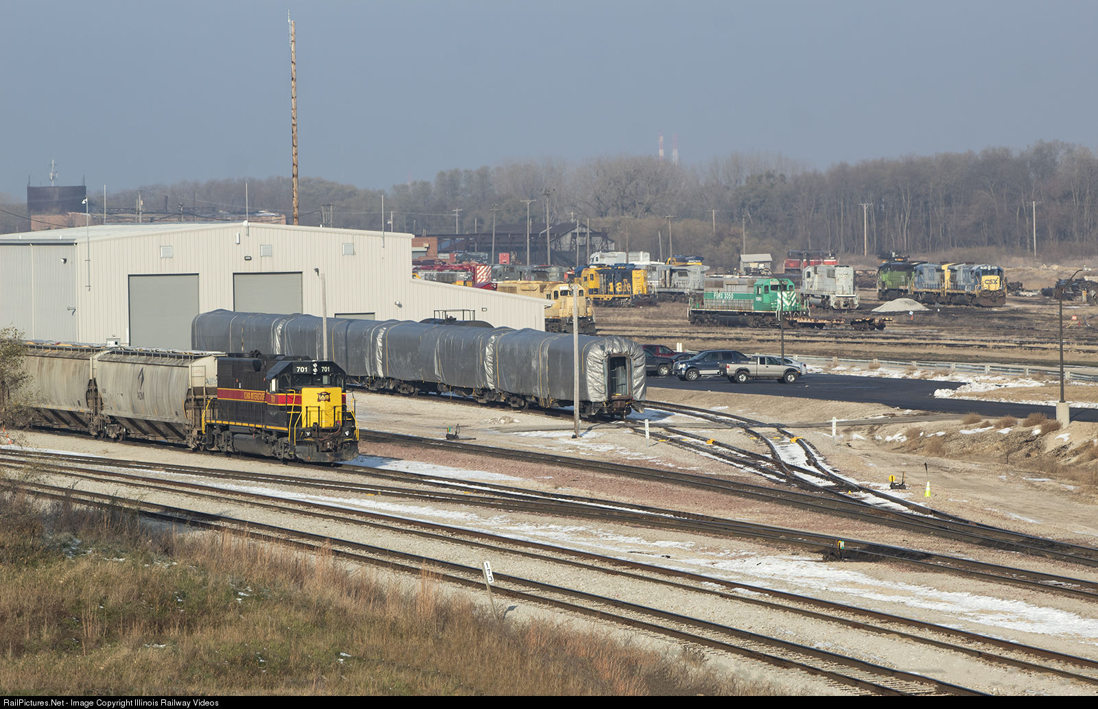 IAIS 701 sits dormant at the IAIS Silvis yard. Meanwhile, hundreds of locomotives await their final orders just next door at NRE Silvis.