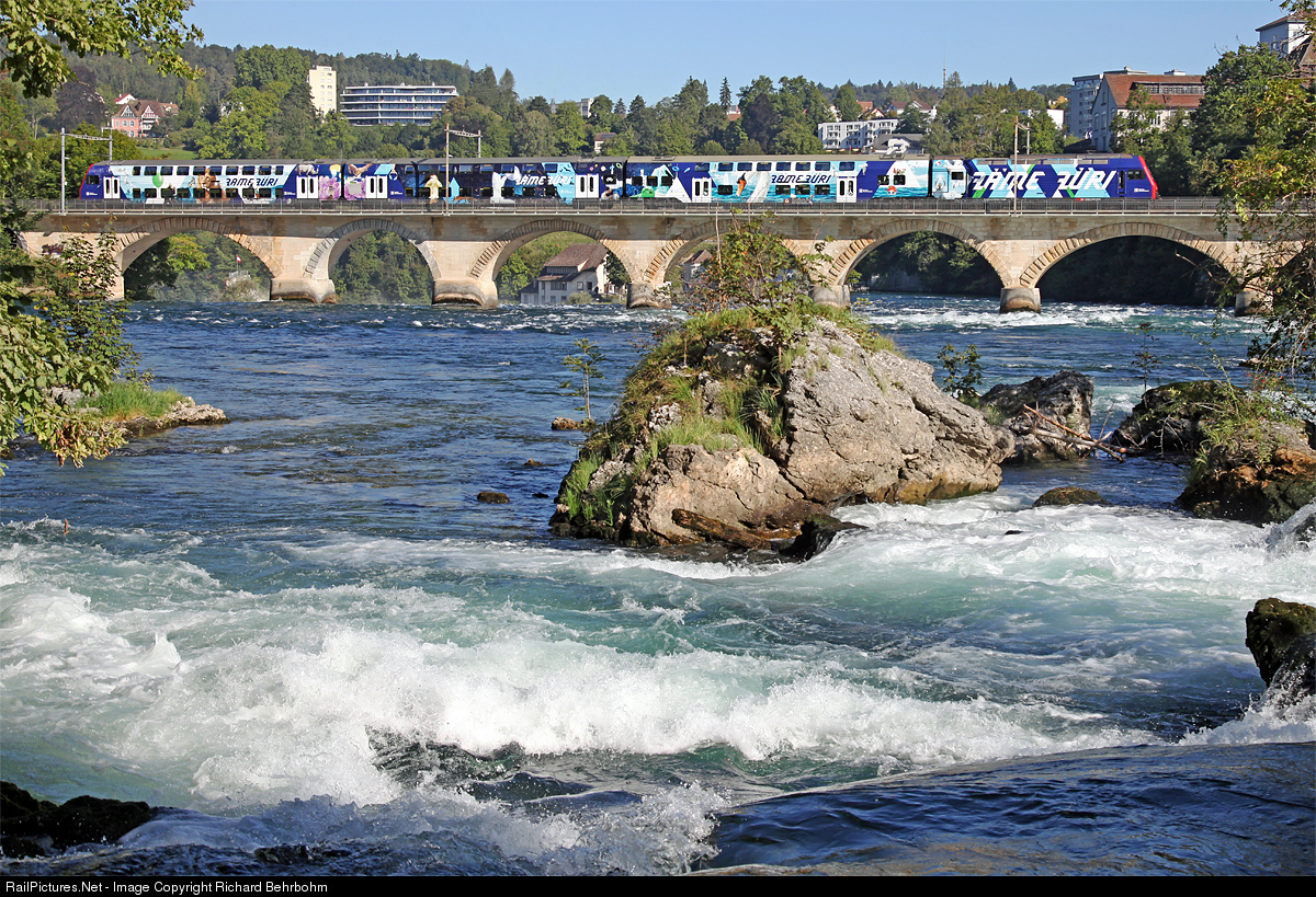 | Since march 2019 this double deck commuter trainset (DPZ) of the S-Bahn Zürich has a a new publicity paint scheme "Zäme Züri" (Zurich together). The train is running the S12 service Brugg - Schaffhausen. |