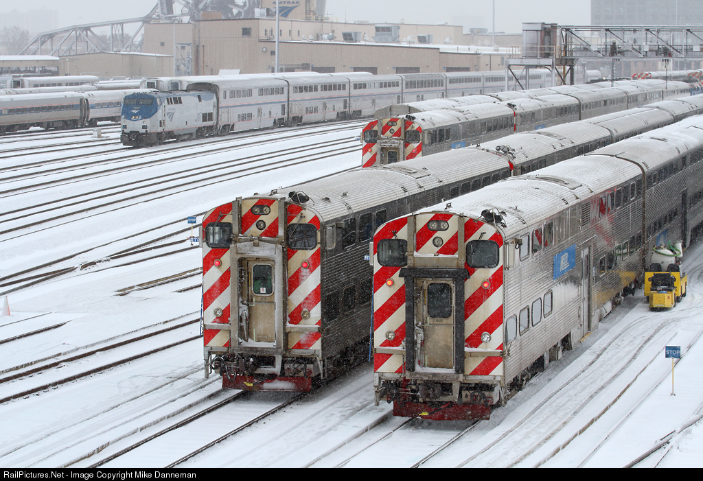 Amtrak GE P40DC No. 817 powers a Superliner-equipped train toward Chicago Union Station at Roosevelt Road on a snowy November 11, 2019. The train is passing Amtrak’s coach yard in the background, as well as BNSF/Metra’s 14th Street yard along Canal Street. This train is either train 29, the Capitol Limited, or train 58, the City of New Orleans, running a bit late—consists are similar and I’m not sure if there’s a way to tell them apart.