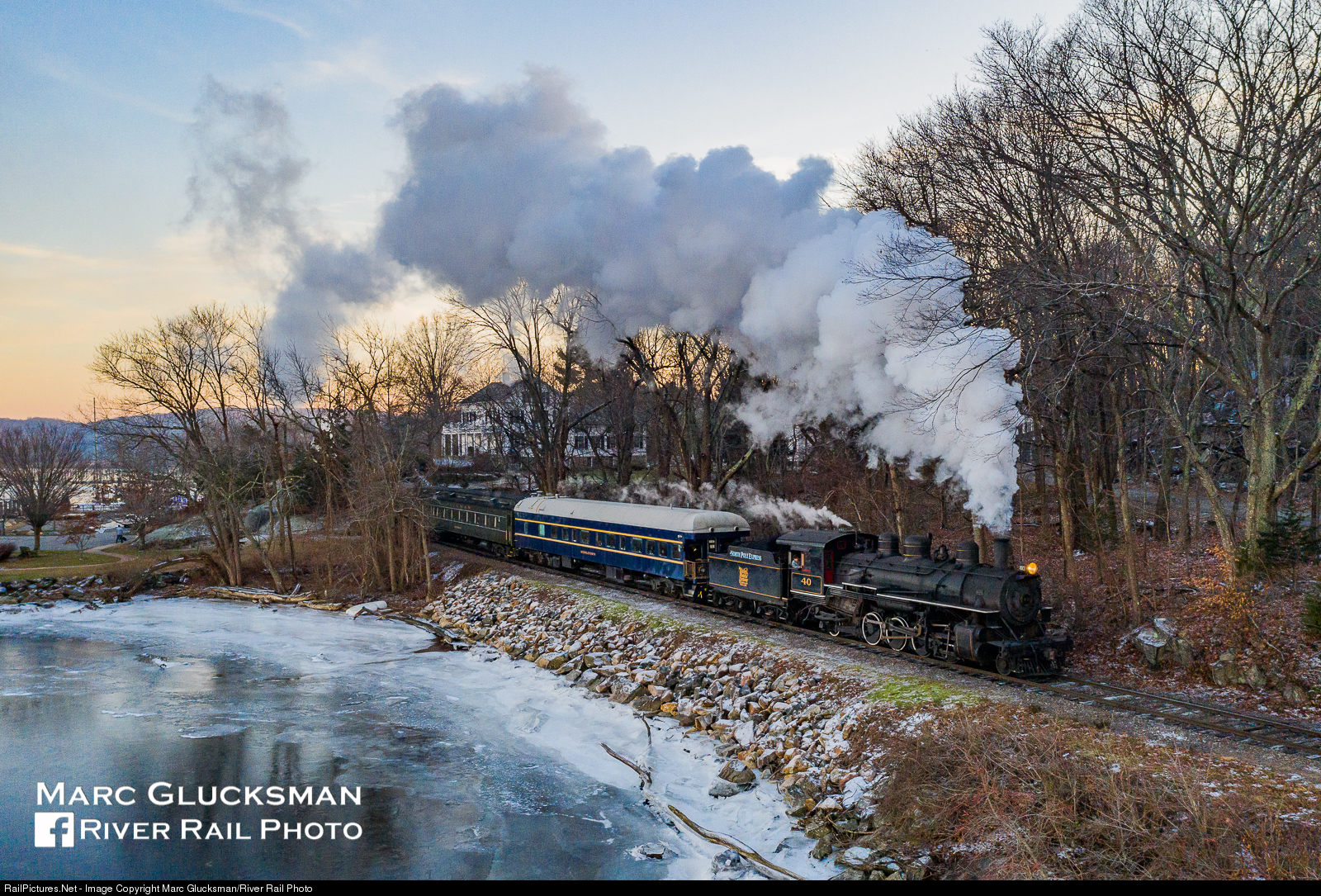 On Sunday, December 22, 2019, Essex Steam Train & Riverboat 40 (Alco, 1920) was hauling the North Pole Express up the Connecticut River in Deep River, CT. This was one of three different steam locomotives operating that day.