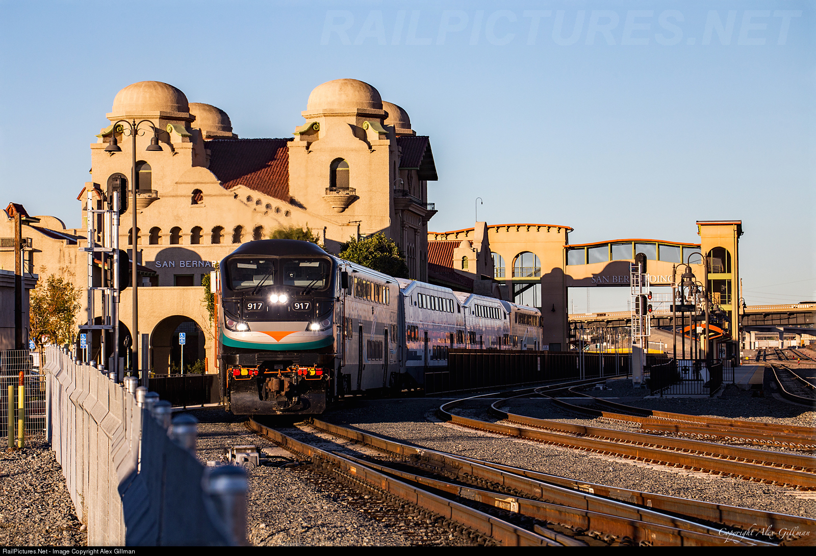 A stark contrast of passenger service in San Bernardino is seen as the morning light spills onto the cowl of SCAX 917. Providing a dramatic backdrop this chilly, winter day, the 1918-built ATSF depot takes stands sentinel and takes one back to the days that passenger trains of all types (short and long hauls) called on this station.