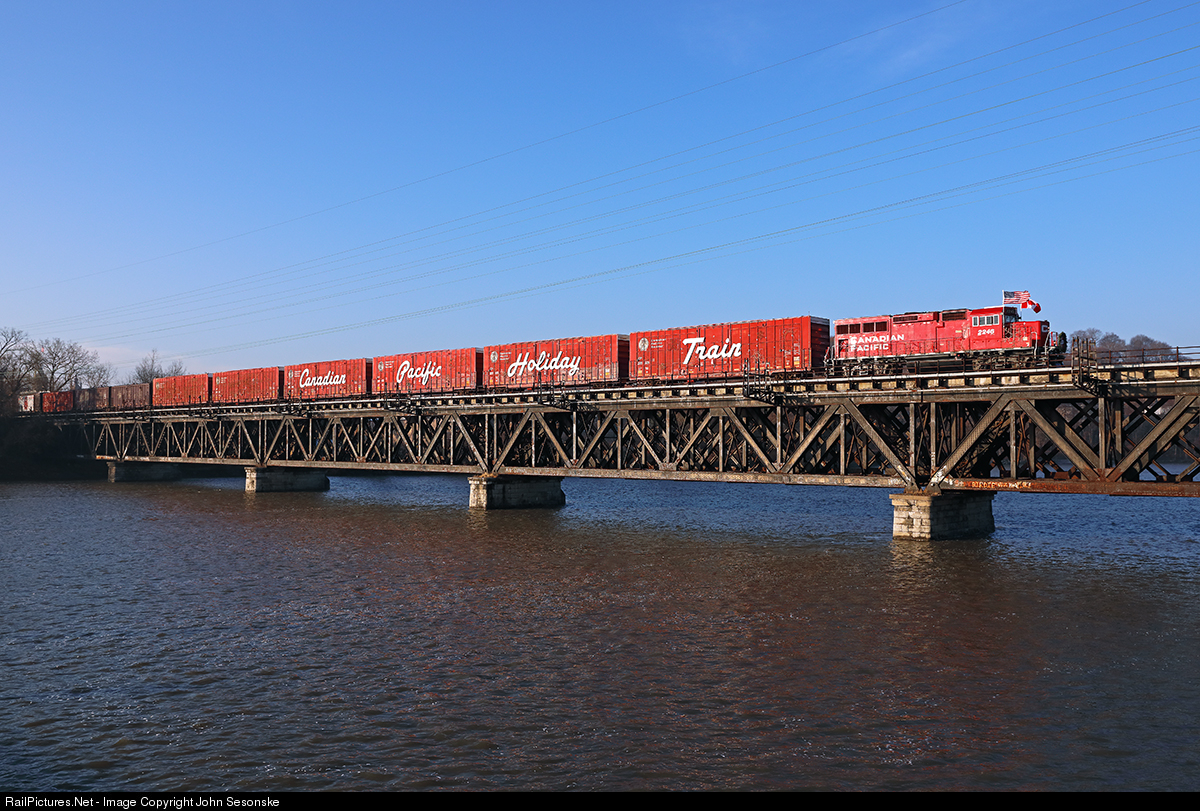 The 2019 Canadian Pacific US Holiday Train is in the process of making it's backup move from CPF-480 to Kenwood Yard on the morning of 11-26. It is getting into position to start the second day of it's 2019 schedule later in the day. Day 2 has stops at Menands (new in 2019), Mechanicville and Saratoga. It is crossing the Mohawk River between Waterford and Cohoes.