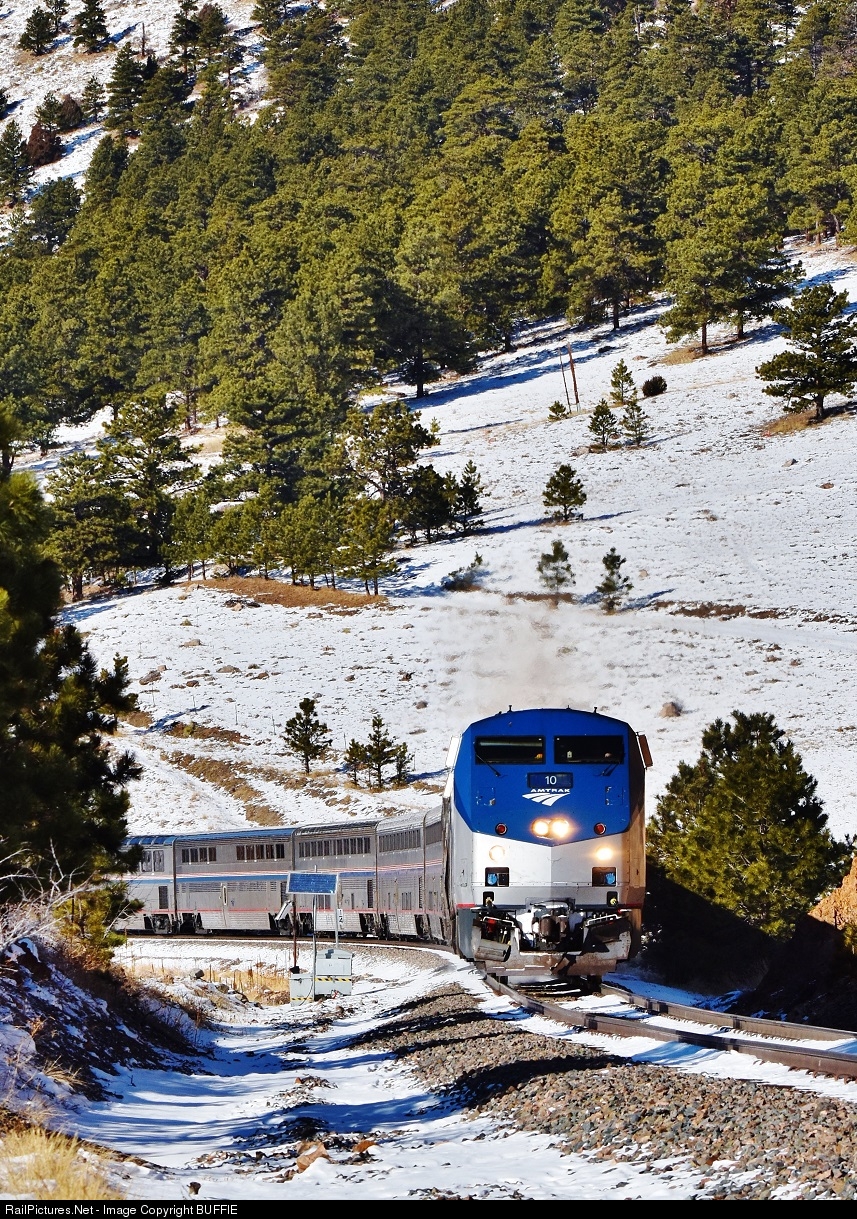 RailPictures.Net Photo: AMTK 10 Amtrak GE P42DC at Coal Creek Canyon, Colorado by BUFFIE