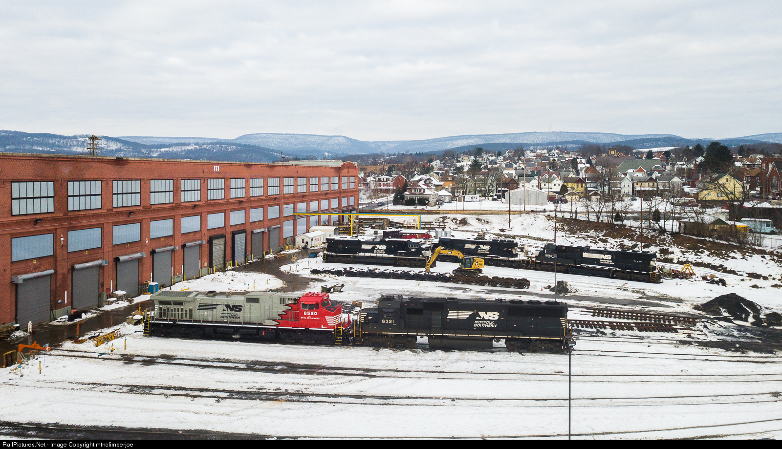 Norfolk Southern's one of a kind to date AC44C6CF rebuilt DC to AC locomotive sits outside the Juniata Shops in Altoona, Pennsylvania after being posed here for a company photo. Along with the 8520 are SD40E 6321, SD70ACe 1167, SD70 2567, and SD40-2 3211 all awaiting work in the shops of varying degree.