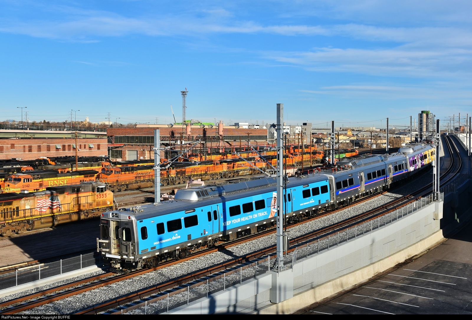 | RTD has started testing the commuter rail line that runs to Thornton which is north of Denver, Colorado. The riders will get a great view of the BNSF engine servicing facility and the large freight sorting yard as it passes through downtown Denver. |