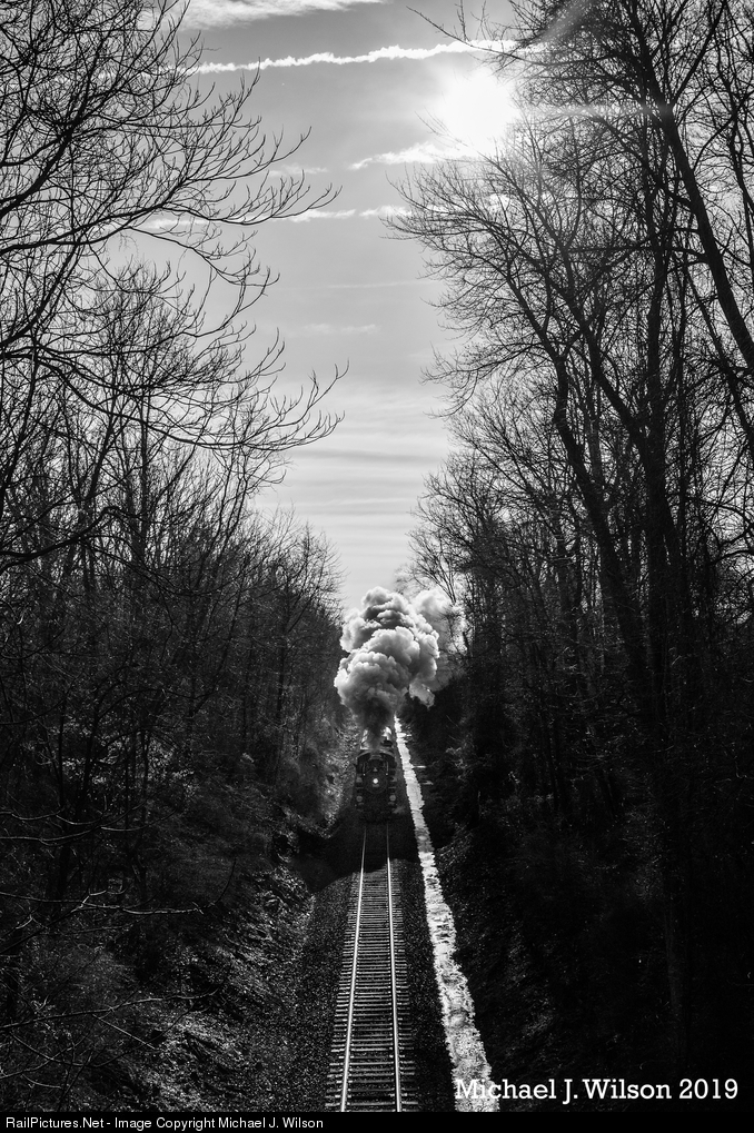| The rhythmic heart beat of a locomotive's exhaust can be heard in the distance while sitting atop the rock cut just north of the Peacock's Lock Viaduct in Reading, Pennsylvania. Here, Reading & Northern #425 races north along the former Reading Railroad mainline with a train full of passengers enjoying their time with Santa on Christmas Eve 2019. |