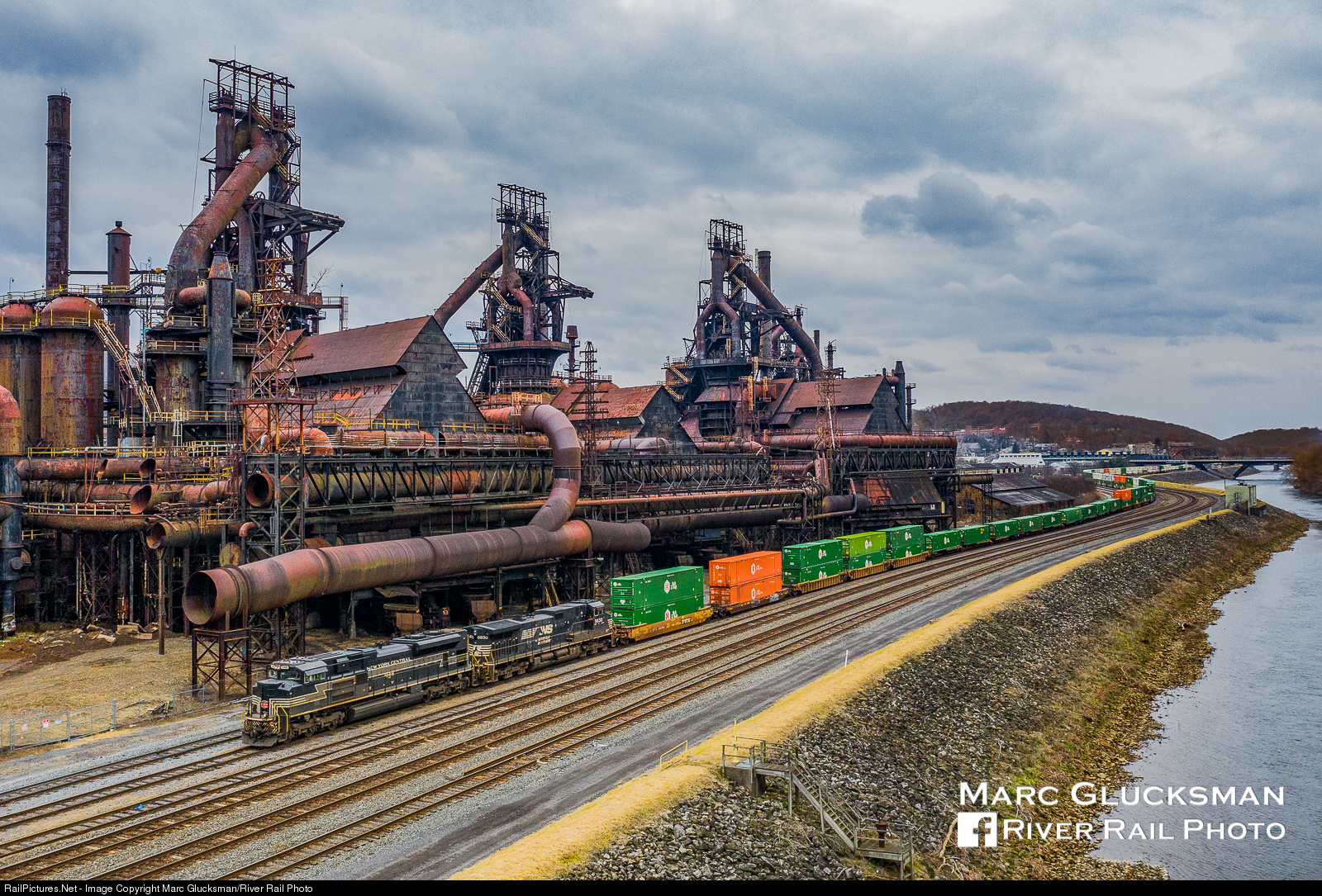 Norfolk Southern Corp Train 294 passes the SteelStacks in Bethlehem, PA on Sunday, February 2, 2020. At one time, this kind of industrial scene would have been common across the New York Central's rails, and for both the Lehigh Valley and Reading Railroads, Bethlehem Steel was a dominant client.