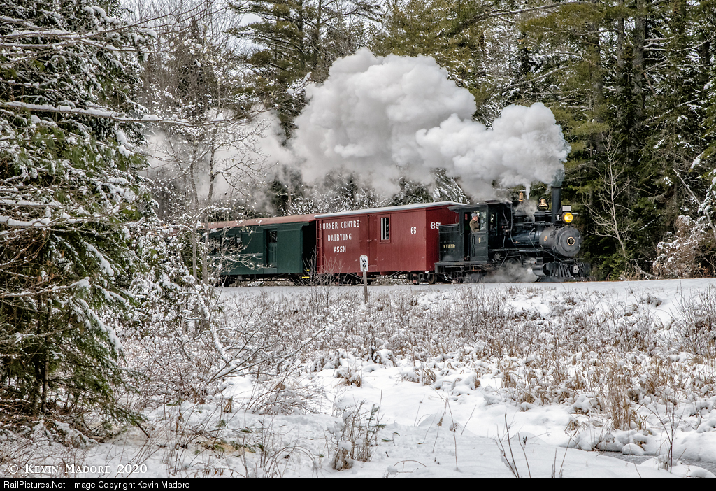 Bound for Wiscasset. With Engineman Roger Whitney at the throttle, WW&F Locomotive #9 charges south past Milepost 6 with a mixed train bound for the seacoast village of Wiscasset. On the original WW&F, Wiscasset was the railroad's hub location. It was there the WW&F interchanged with the standard-gauge Maine Central Railroad and it was there that the WW&F's main yard was located. Also located in Wiscasset was the Turner Centre Creamery, which produced dairy products from milk that came from inland farms. The WW&F fed the creamery and in this re-creation, you see their reefer car located just behind the locomotive. Although the modern-day WW&F Museum does not own the right-of-way into Wiscasset any longer, there are still small remnants of the original railroad in town. Most prominently, the pilings of the old WW&F trestle over the Sheepscot River cans still be seen in the water north of Route 1.