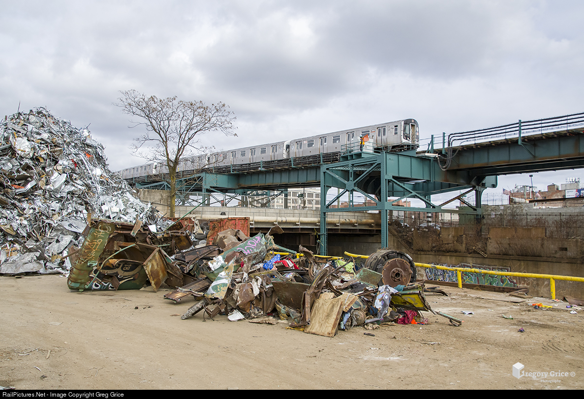 The remains of Louisville & Indiana Railroad SW1200 #9321 sit in a pile at Gershow Recycling in Brooklyn as a Canarsie bound "L" train passes above. Gershow's track, where 9321's frame & trucks remain, and the Bay Ridge Branch are just over the ledge below. From here, the scrap metal will be sorted, processed and most likely become something else. Will a piece of 9321 end up in you're household? You never know!