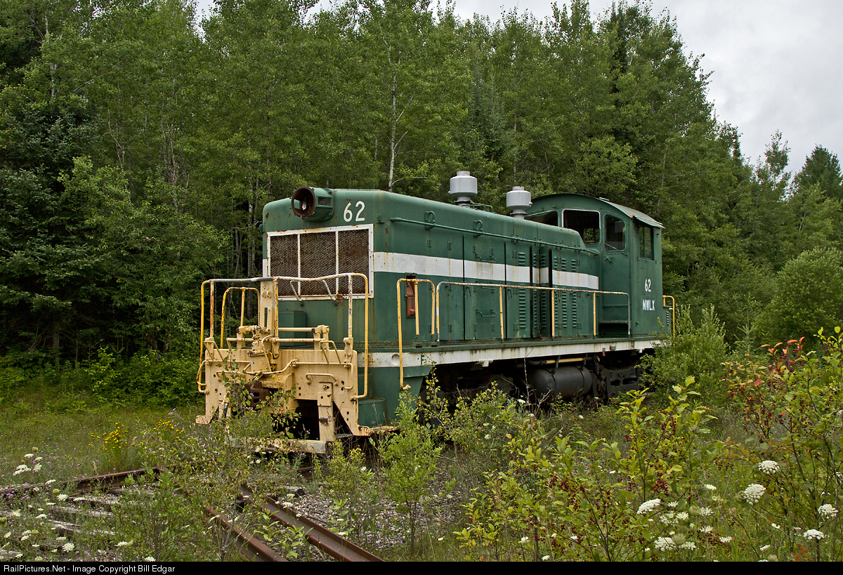 | MWLX 62, former Nicolet Badger Northern NW2, rests in the woods along seldom used CN trackage (former Soo) in northeastern Wisconsin. The loco apparently has been for sale for a number of years and sits on what is left of the connecting track that ran to Laona from the Soo Line. |