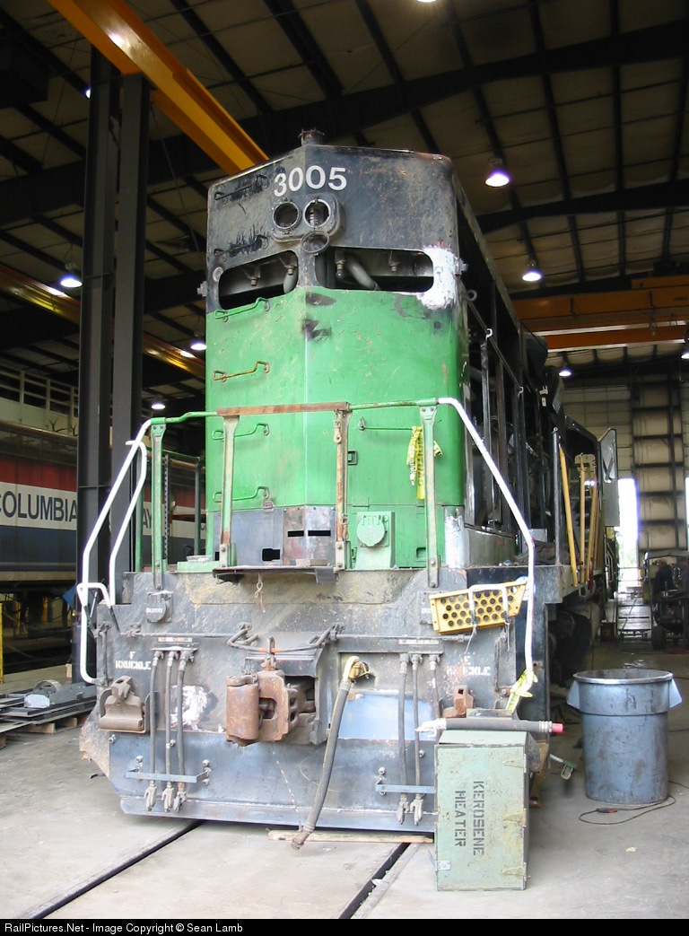 BNSF 3005 is undergoing some heavy duty work at CEECO shops in Tacoma. On the next track is one of BC Rail's electric locomotives getting scrapped.