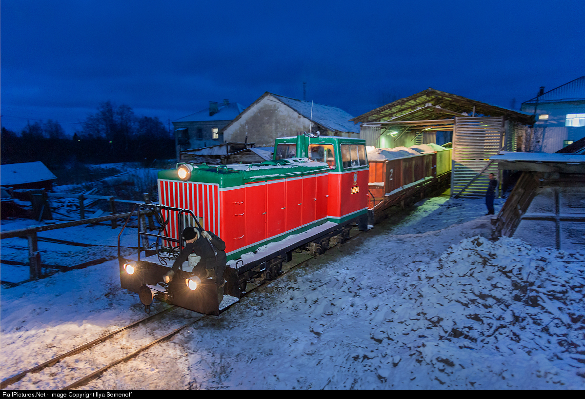 TU6A narrow gauge diesel locomotive goes for the peat in a bluehour. In winter, the local boiler house reaches its full capacity, it is necessary to ensure a stable fuel supply. Work begins in the dark. In the early morning, the locomotive picks up empty cars from the boiler barn, after which it goes through the sleeping winter forest to the swamps, where peat has been harvested since the summer.