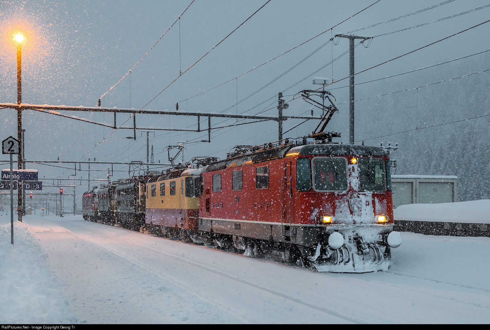RailPictures.Net Photo: 11158, 421 393, 10987, 10951, 11602 SBB Re 4/4 II (Re 420) at Airolo, Switzerland by Georg Trüb